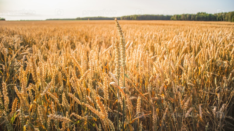 Поле желтой спелой пшеницы в солнечный день