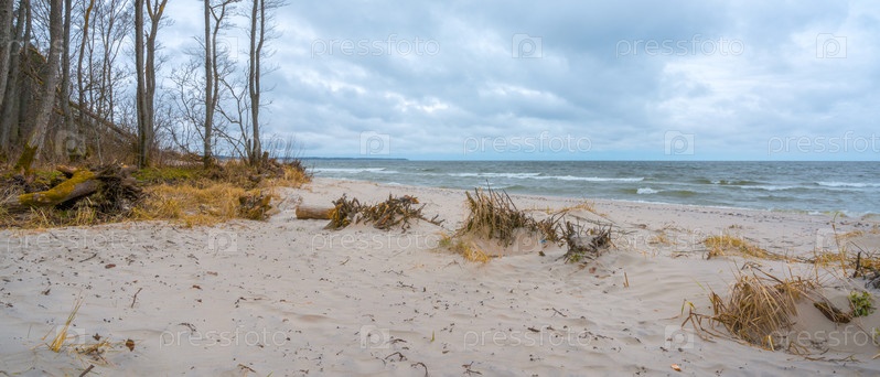 Лес на побережье Балтийского моря в пасмурный день осенью