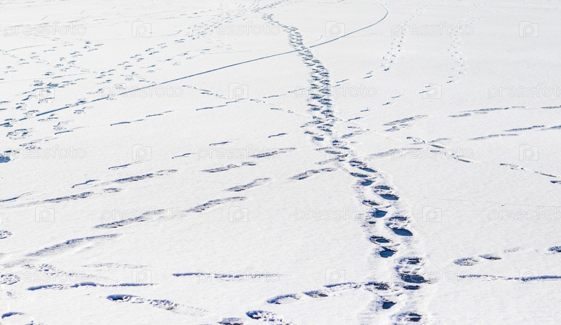 Множественные следы на снегу. Текстура