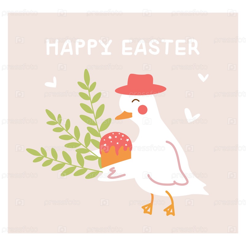 Пасхальная композиция с гусем, куличом и зелеными веточками, шаблон