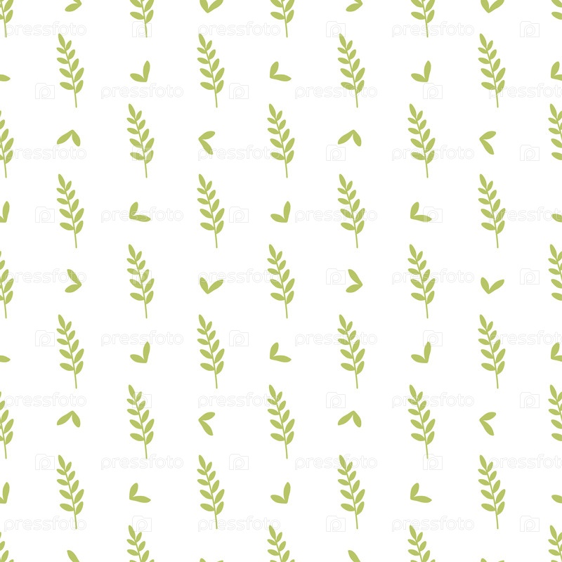 Бесшовный узор с зелеными листьями, свежей декоративной травой, весенним принтом