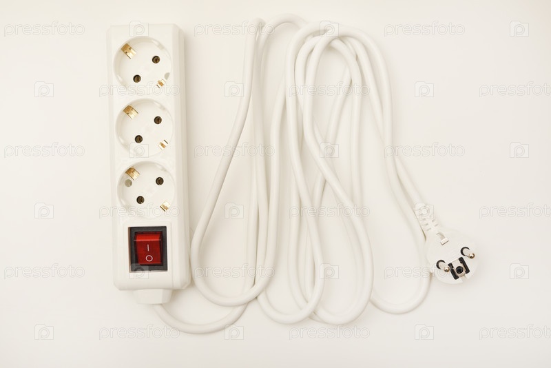 Удлинитель с тремя розетками и красным выключателем