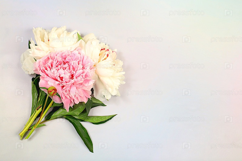 Букет свежих пионов на солнечном фоне.Абстрактная цветочная композиция.Баннер для поздравлений с Днем матери, свадьбой, Женским днем, днем рождения. Минимальная современная эстетика, элегантная концепция красоты