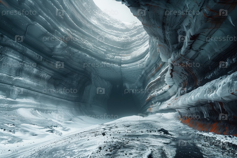 Вид изнутри ледниковой пещеры с вертикальным колодцем в потолке