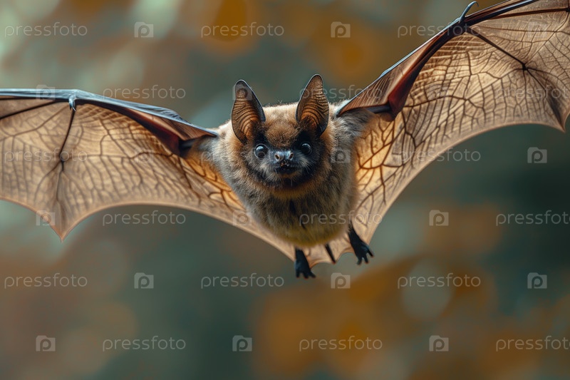 Симпатичная маленькая летучая мышь в полете крупным планом на размытом естественном фоне