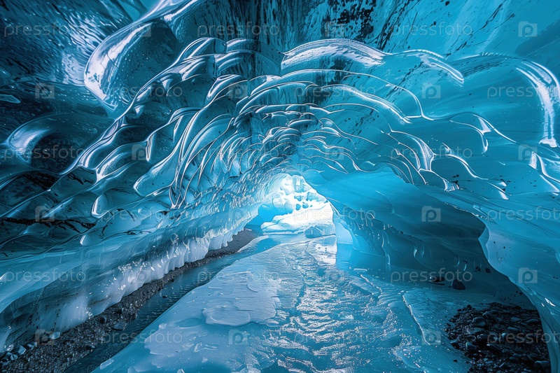 Ледниковая пещера, образованная потоками воды внутри тающего ледника
