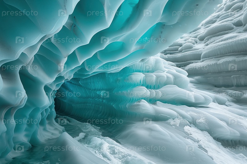 Ледниковая пещера, образованная потоками воды внутри тающего ледника