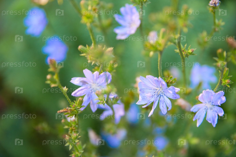 Цветы цикория крупным планом в поле