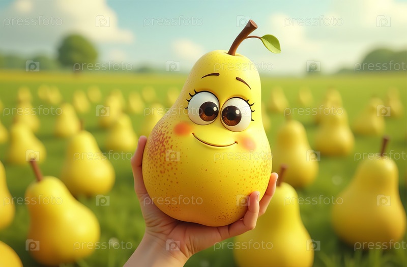 Большой грушевый фруктовый сад, ферма, саженцы, растения, сладкие фрукты. Генеративный искусственный интеллект