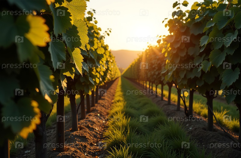 Большой виноградный сад, ферма, саженцы, растения, сладкие фрукты. Генеративный искусственный интеллект