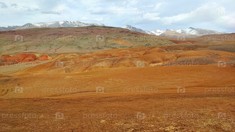 Туристическое место с красивыми разноцветными участками земной поверхности - Марс три, Кош-Агачский район, Республика Алтай, Россия.Туристическое направление с прекрасными многоцветными районами земной поверхности is Mars, Kosh-Agachsky district, Altai Re