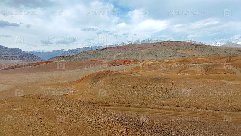 Туристическое место с красивыми разноцветными участками земной поверхности - Марс три, Кош-Агачский район, Республика Алтай, Россия.Туристическое направление с прекрасными многоцветными районами земной поверхности is Mars, Kosh-Agachsky district, Altai Re