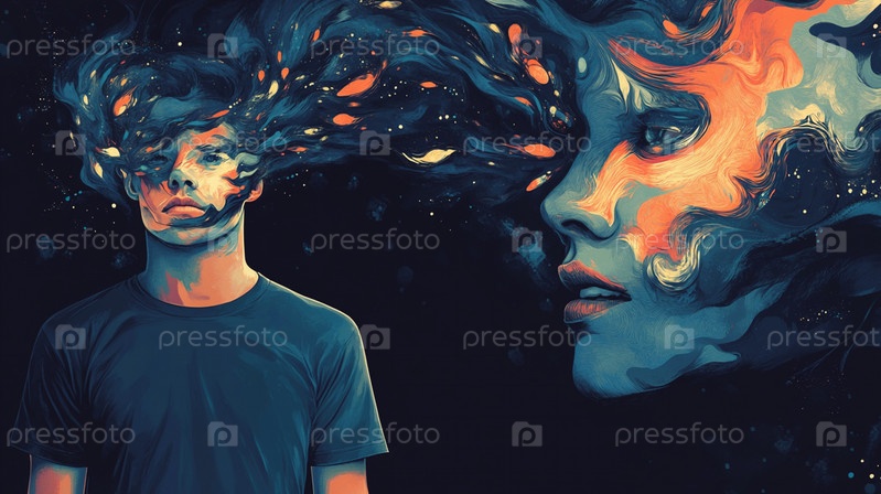 Сине-оранжевая гармония: два портрета в одном