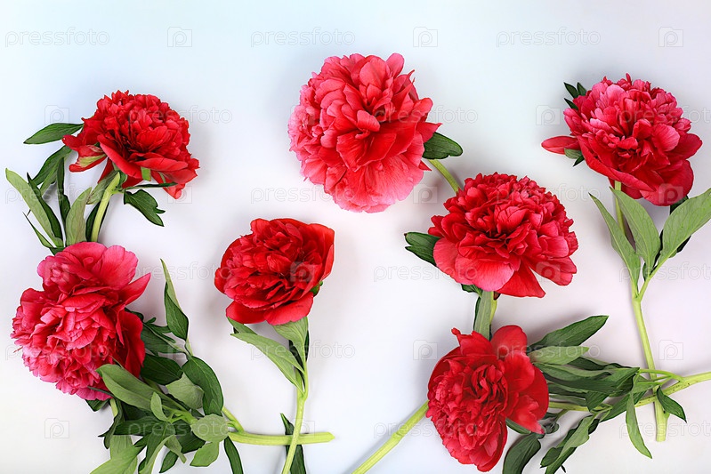 Узор красивых бордовых живых пионов на светлом фоне, абстрактная цветочная композиция для праздничной открытки. Шаблон дизайна и фон экрана. Концепция весеннего приветствия