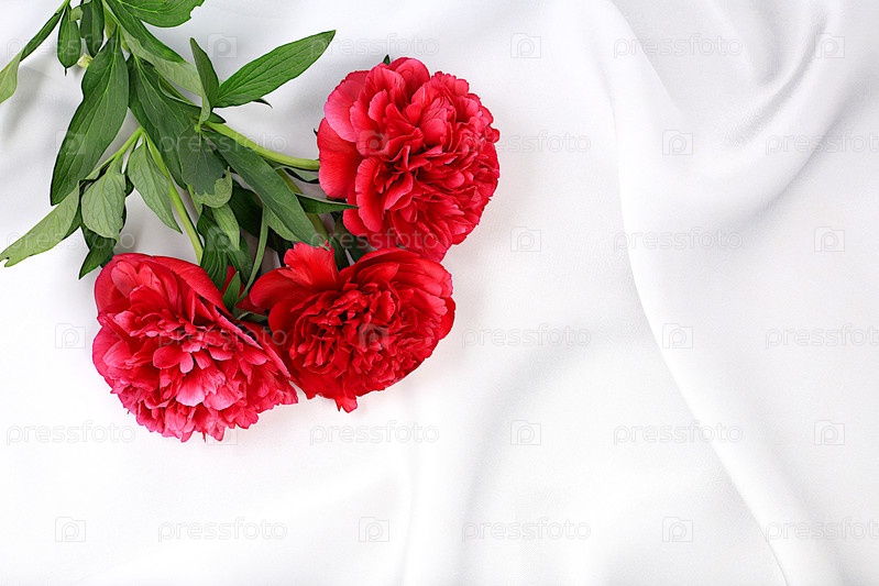 Букет красивых бордовых живых пионов на светлой скатерти, подарок любимому, абстрактная цветочная композиция для праздничной открытки. Шаблон дизайна и фон экрана. Концепция весеннего приветствия