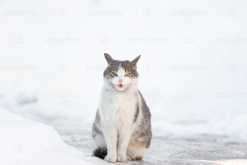 Кот прячется в глубоком снегу. Кот идет по снегу зимой