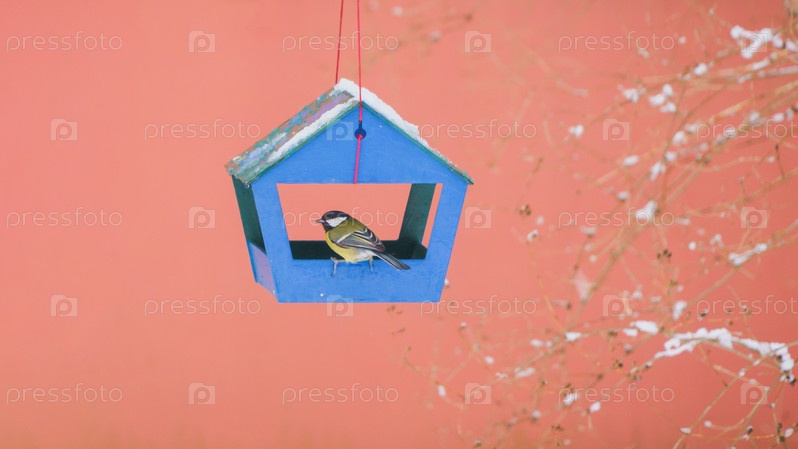Птицы в кормушке холодным зимним днем