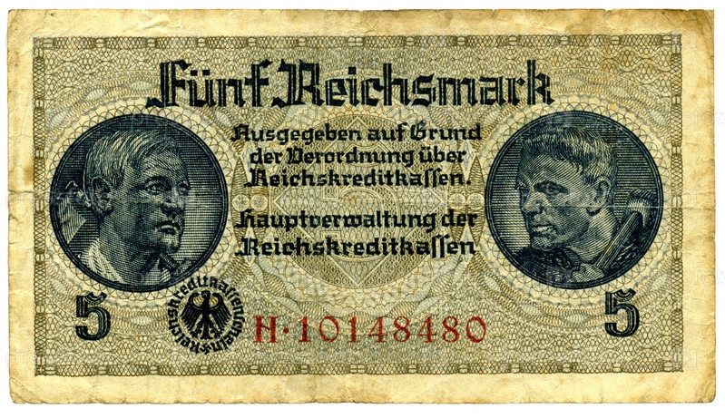 Банкнота достоинством 5 рейхсмарок начала сороковых годов двадцатого века. Германия