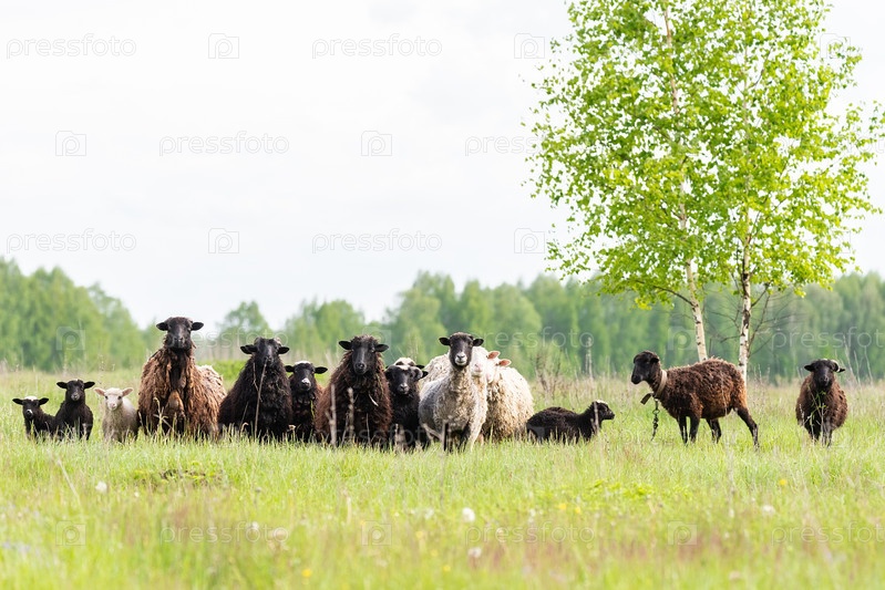 Ягнята и овцы зеленая трава