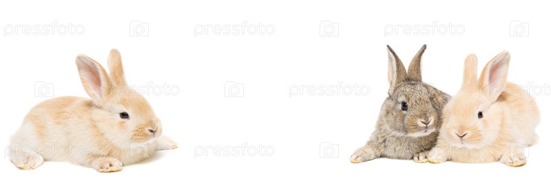 Серый и красный кролик на белом фоне