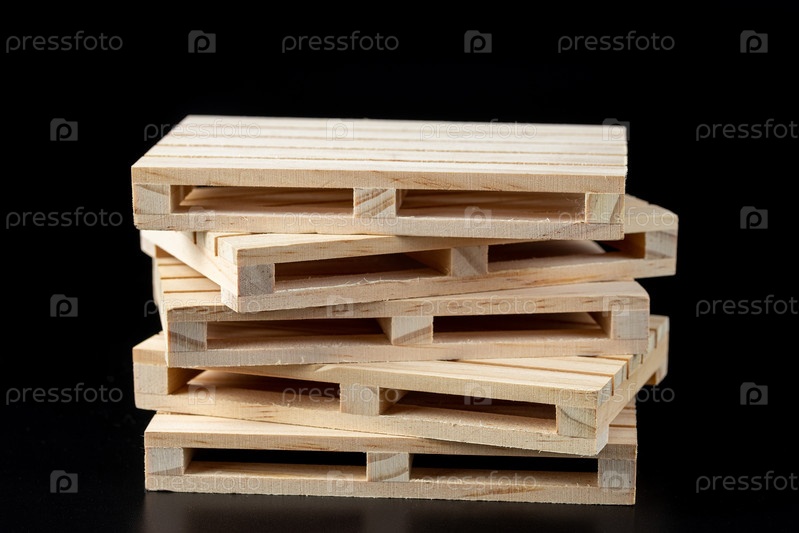 Деревянный поддон евро типа сувенир на черном фоне