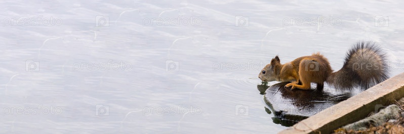 Белка пьет воду
