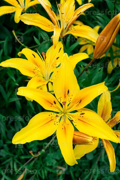 Желтые лилии в саду