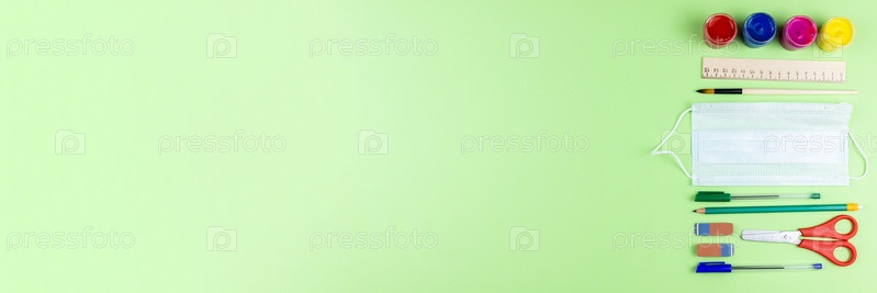 Канцелярские принадлежности и медицинская маска