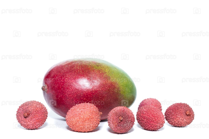 Манго и личи на белом фоне