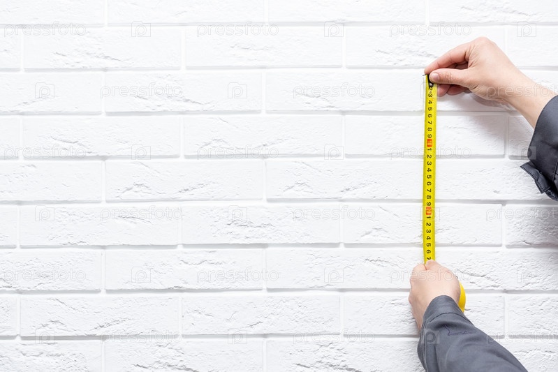 Мужчина с сантиметром на белом фоне