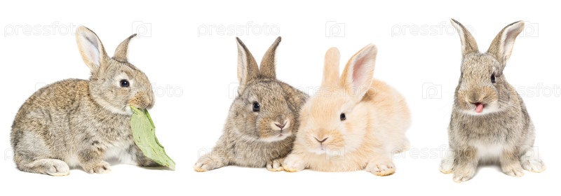 Серый и красный кролик на белом фоне