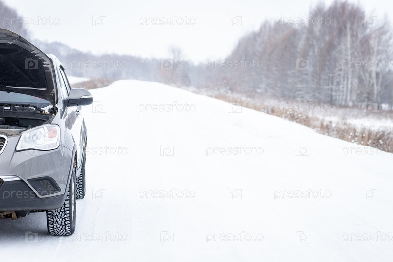 Сломанная машина на зимней дороге