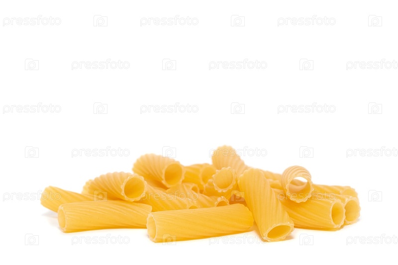 Паста трубочки, тортильони или эликоидали, изолированные на белом фоне