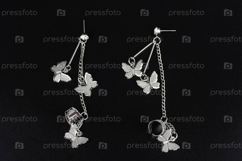 Ювелирные серьги и бижутерия на черном фоне