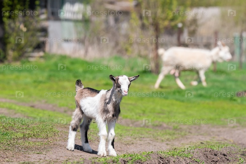 Козленок и коза стоят на улице