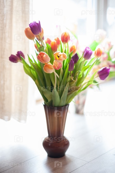 Букет тюльпанов на окне