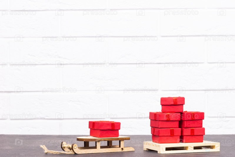 Сани с рождественскими подарками на белом фоне