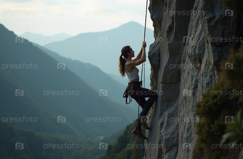 Женщина, путешествующая туристом в горах. Активный отдых на природе. Генеративный искусственный интеллект