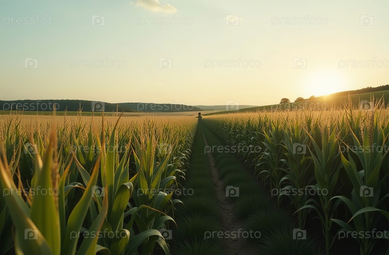 Кукурузный початок на огороде, ферме, рассаде, растениях, овощах. Генеративный искусственный интеллект