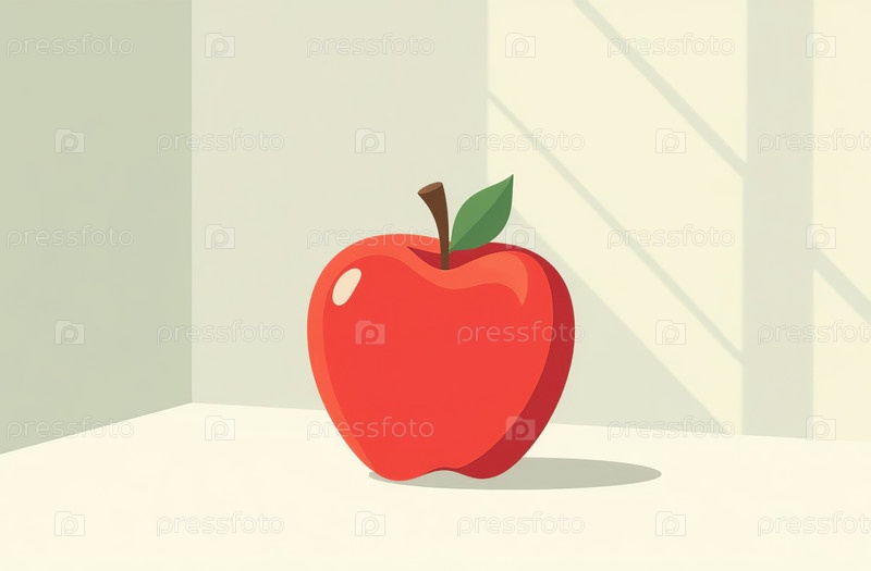 Яблоко на столе, крупный план свежих фруктов, яркая кухня. Генеративный ИИ