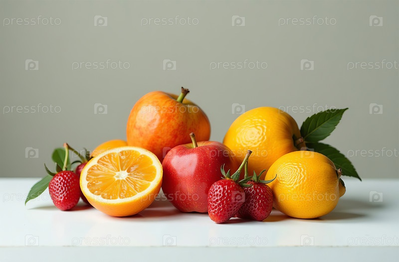 Натюрморт на столе, крупный план свежих фруктов, яркая кухня. Генеративный искусственный интеллект