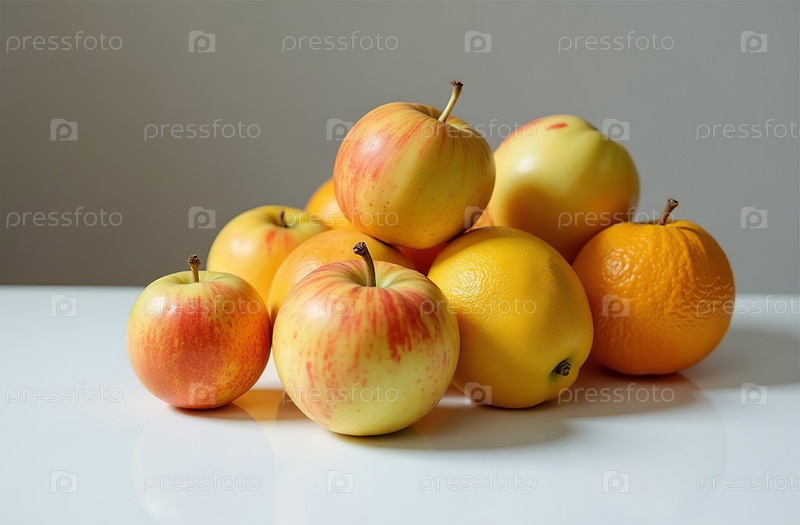 Натюрморт на столе, крупный план свежих фруктов, яркая кухня. Генеративный искусственный интеллект