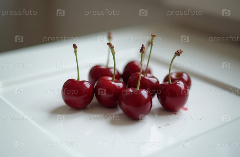 Вишня на столе, крупный план свежих ягод, яркая кухня. Генеративный искусственный интеллект