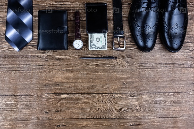 Мужские аксессуары на деревянном фоне