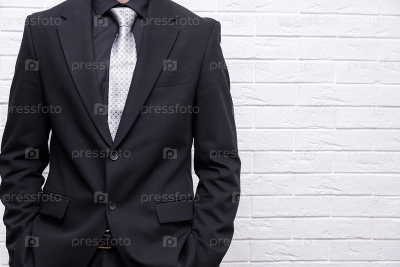 Мужчина-бизнесмен на фоне белой кирпичной стены