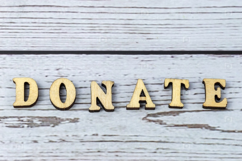 Слово donate из деревянных кубиков Концептуальная фотография Вид сверху