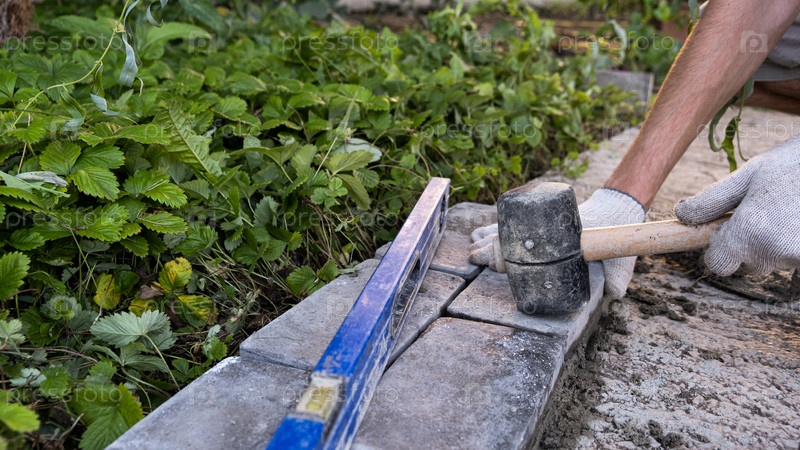 Укладка брусчатки на цементный раствор. Укладка садовой дорожки из плитки. Самостоятельная укладка бетонной тротуарной плитки во дворе дома. сделай сам. Сделай сам
