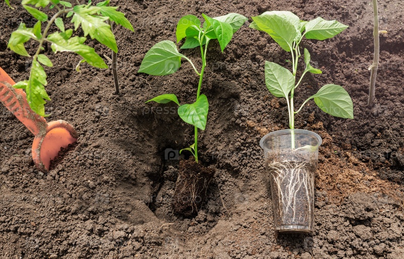 Посадка рассады перца в грунт. Выращивание растений на даче. Овощеводство