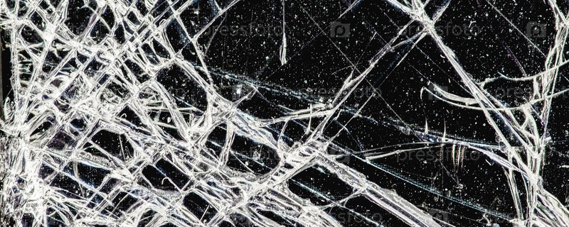 Белые трещины на черной стеклянной поверхности, абстракция, текстура
