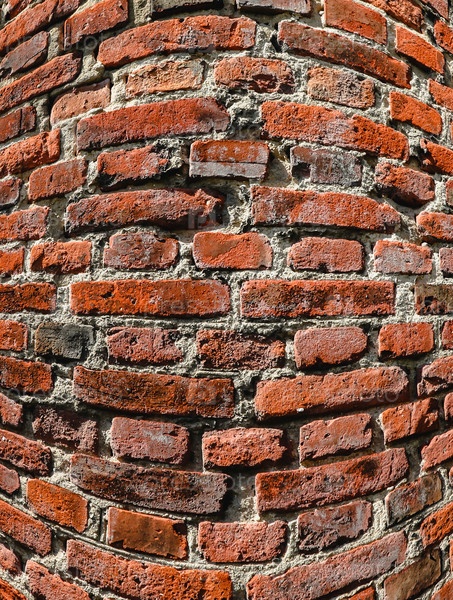Оранжевая кирпичная стена с искажением линз, фон